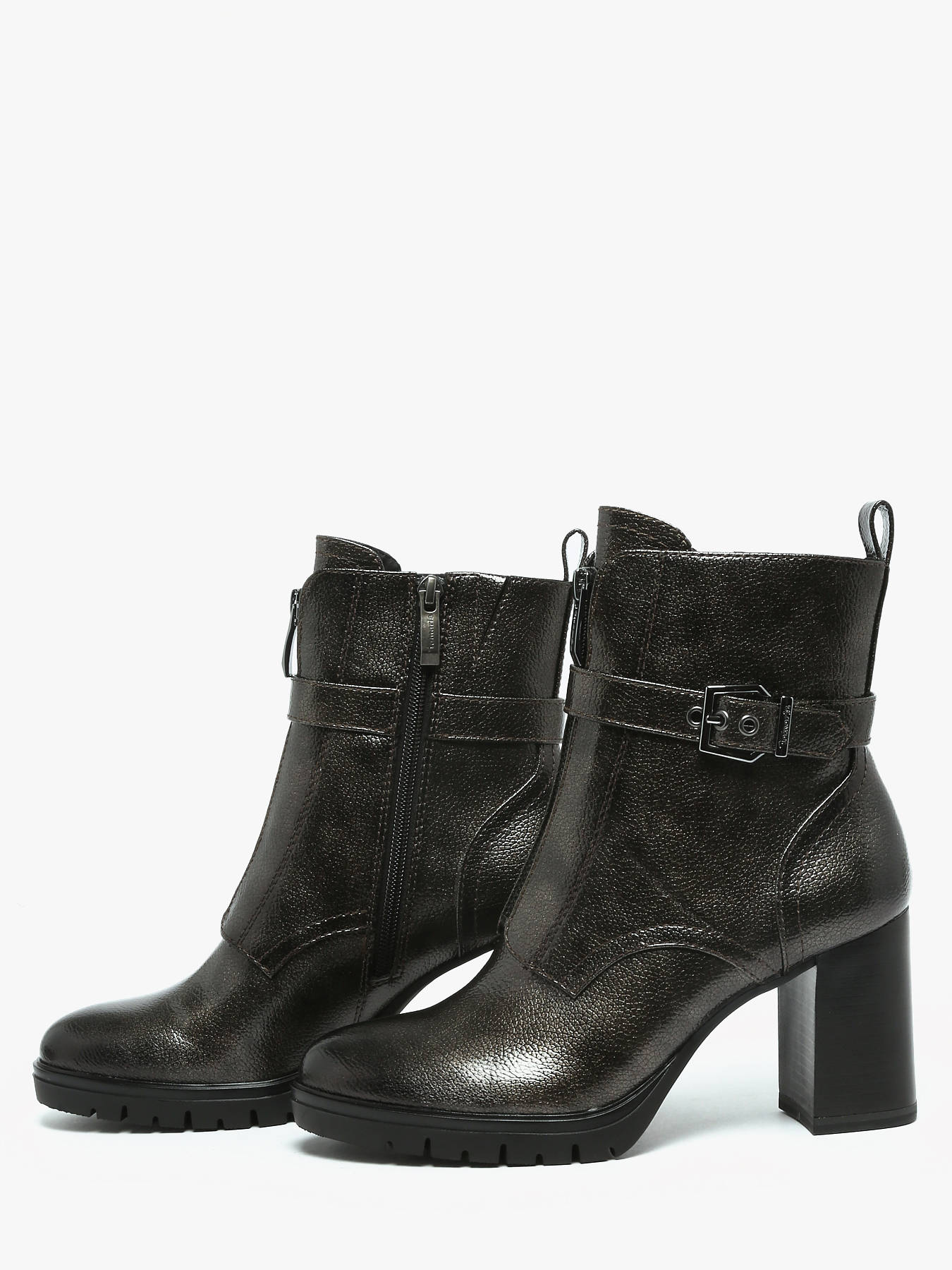 Apportez élégance et modernité à vos tenues avec ces bottines à talon de la marque TAMARIS. Conçues en matière synthétique avec une finition vernis brillante, elles offrent un style chic et sophistiqué, idéal pour sublimer vos looks quotidiens ou en soirée. Leur doublure en textile et synthétique, associée à la semelle intérieure textile, assure confort et douceur tout au long de la journée. Pratiques grâce à leur fermeture zippée, elles s’enfilent facilement tout en garantissant un maintien optimal du pied. Le talon large de 8,5 cm apporte hauteur et féminité tout en restant stable pour une marche confortable. Polyvalentes, ces bottines se marient avec un jean, une jupe ou une robe pour créer un style raffiné et contemporain. Les bottines TAMARIS allient qualité, confort et allure pour un look résolument élégant.