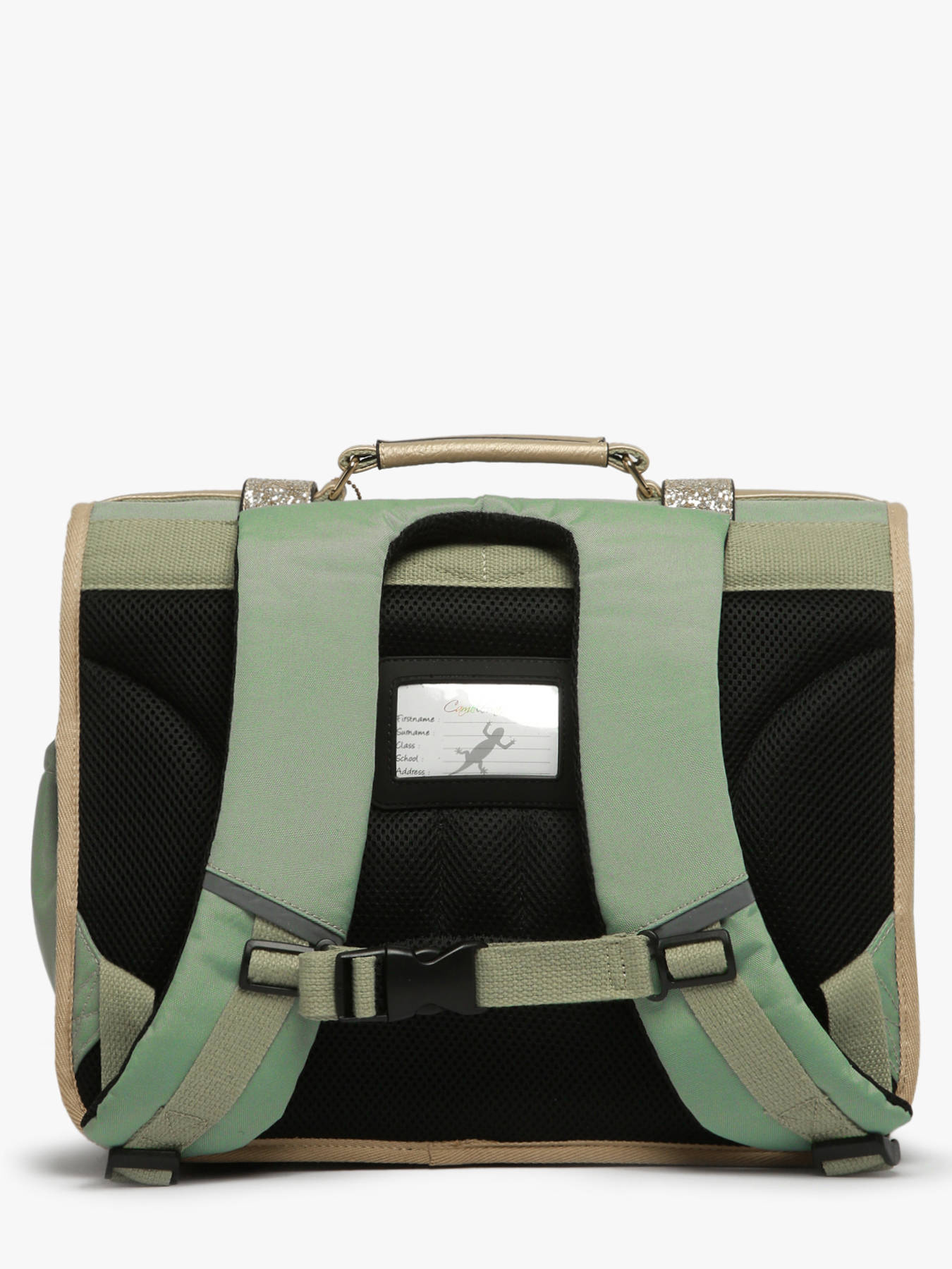 38 cm - 18 litres - 1.07 kg ~ Cartable enfant primaire 38cm de la ligne Vintage Fantasy de chez Caméléon, parfait pour le CP, CE1 et le CE2. Il se divise en deux compartiments séparés par une poche centrale zippée et peut contenir les formats cahiers A4 et 24x32cm. On retrouve à l'extérieur du cartable un emplacement pour la gourde. Pratique, il dispose de deux poches à fermeture éclair sur le devant, idéales pour un petit goûter ou l'agenda. Petit plus, ce cartable dispose d'une étiquette nom. Le fond du cartable est renforcé pour plus de solidité et des bandes réfléchissantes sont disposées autour du sac et sur les bretelles. Conçu pour le confort des enfants, le dos et les bretelles sont rembourrés. Petit plus, la règle est offerte ! Fabriqué en polyester recyclé imperméable.